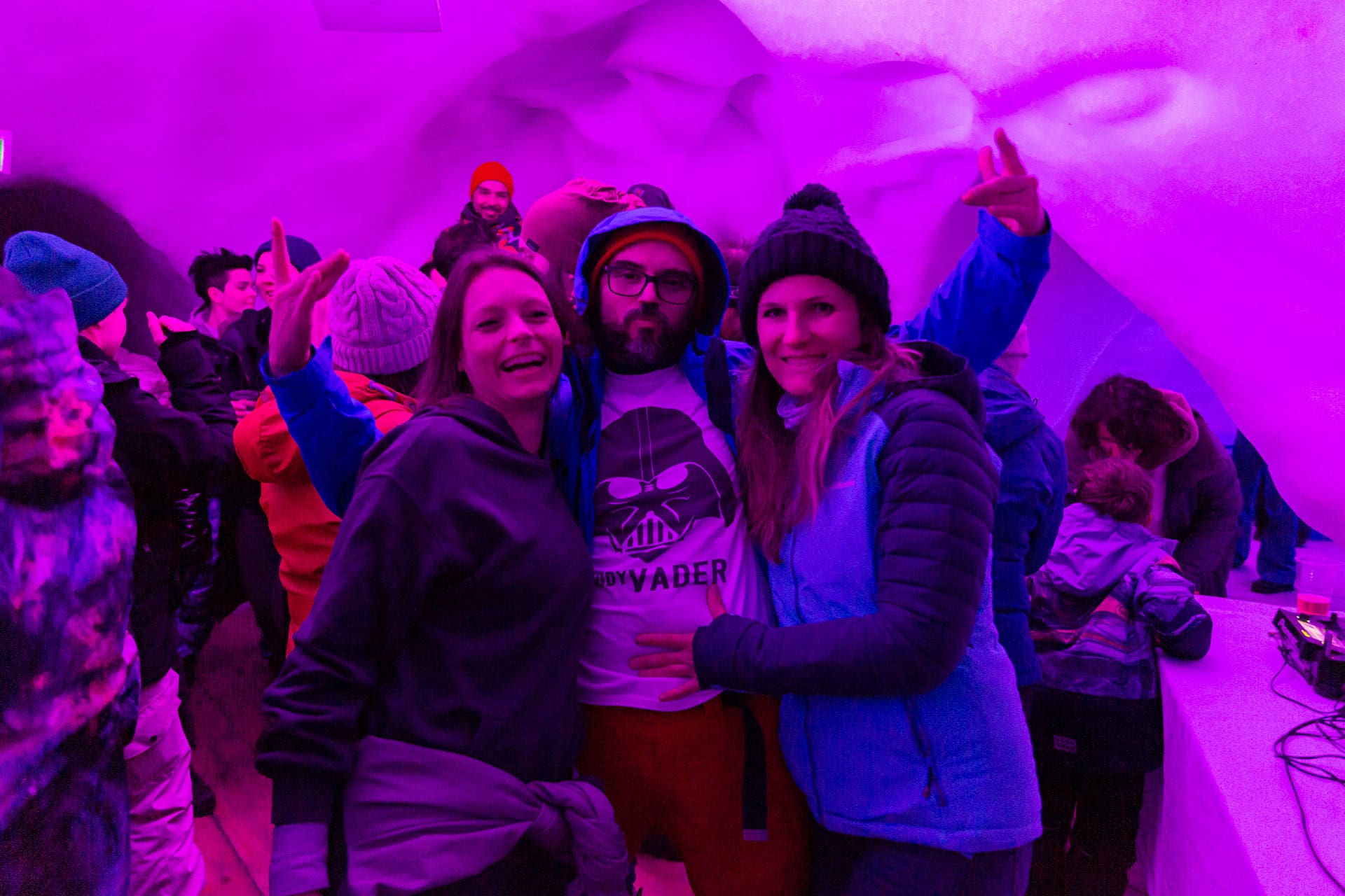 Pentru una dintre seri, Igloo Village este doar al nostru. Petrecem de la apus până noaptea cu luminile stațiunii la picioarele noastre.